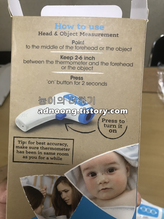 귀여운 아기가 반겨주고 있습니다. 어머니 표정이 참 심각하네요. 이렇게 열이 의심될 때는 PROVEN 비접촉 체온계 NCT-336BLU를 사용하면 됩니다.