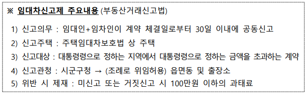 전월세 신고제를 지키지 않고 미신고나 거짓신고를 하게 되면 100만원 이하의 과태료를 물게되니 반드시 신고해서 벌금을 물지 않도록 주의를 해야할 것입니다.