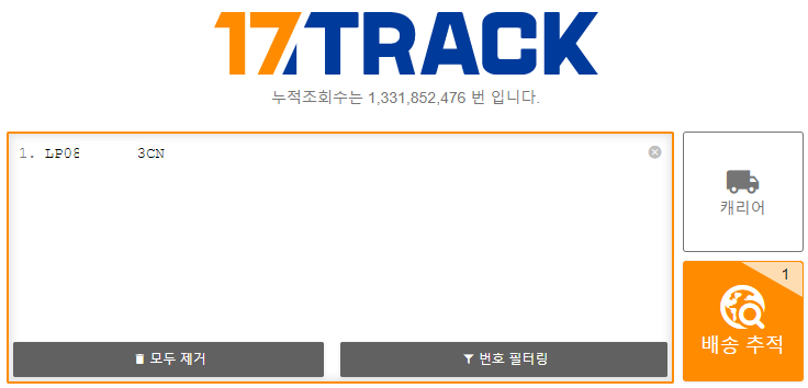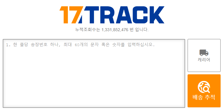 17TRACK에 접속하면 위와 같은 화면이 나오고, 아래와 같이 "1. 한 줄 송장번호 하나..." 부분에 위의 송장번호를 입력하면 됩니다.