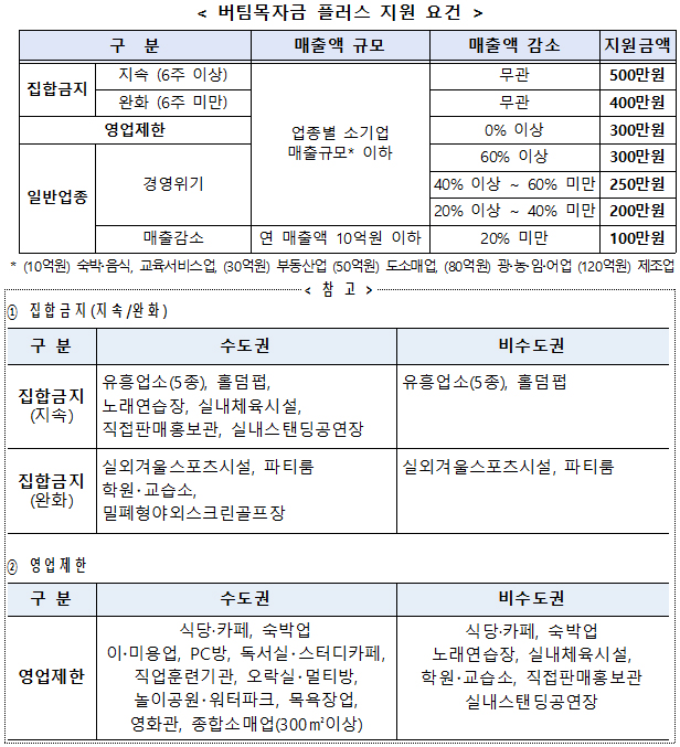 여행이나 공연, 전시 등도 피해가 심각한데 이런 피해가 심각한 여행업에 버팀목 플러스+ 자금 단가를 100만원 인상하고 공연, 전시, 이벤트업 등은 50만원인상해서 지급을 한다고 합니다.
