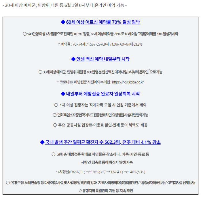 | 30세 이상 얀센 백신 사전예약, 예비군 및 민방위 대상 (0) | 2021.05.31 |