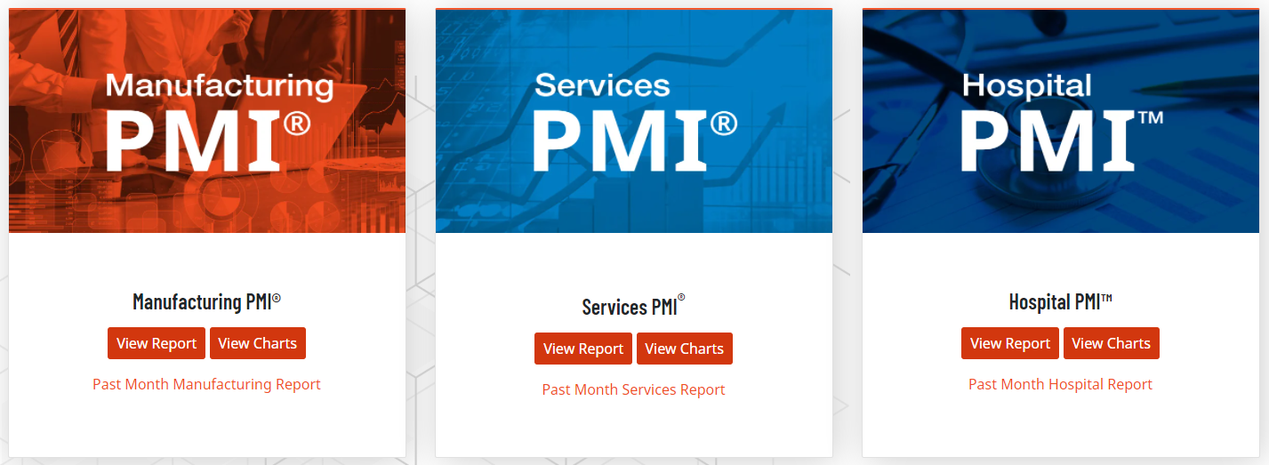 Supply Management News & Reports > ISM Report On Business 순서로 들어가면 아래와 같이 제조업PMI, 서비스업 PMI 로 구분된 아래와 같은 화면을 보실 수 있습니다.